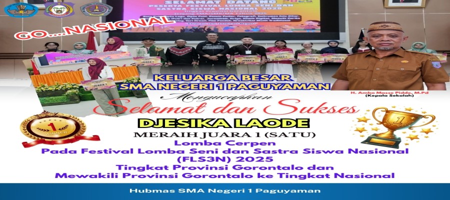 Lagi dan lagi siswa SMAN 1 Paguyaman mewakili Provinsi Gorontalo ke tingkat Nasional pada Ajang FLS3N Bidang Cerpen