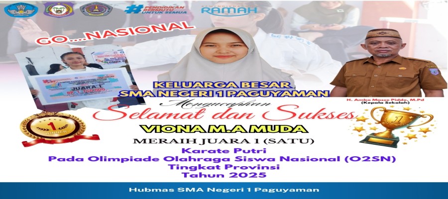 Sebuah kebanggaan bagi masyarakat Boalemo, salah seorang atlet karate putri asal SMA Negeri 1 Paguyaman, Kabupaten Boalemo, Viona MA Muda sukses meraih juara 1 pada